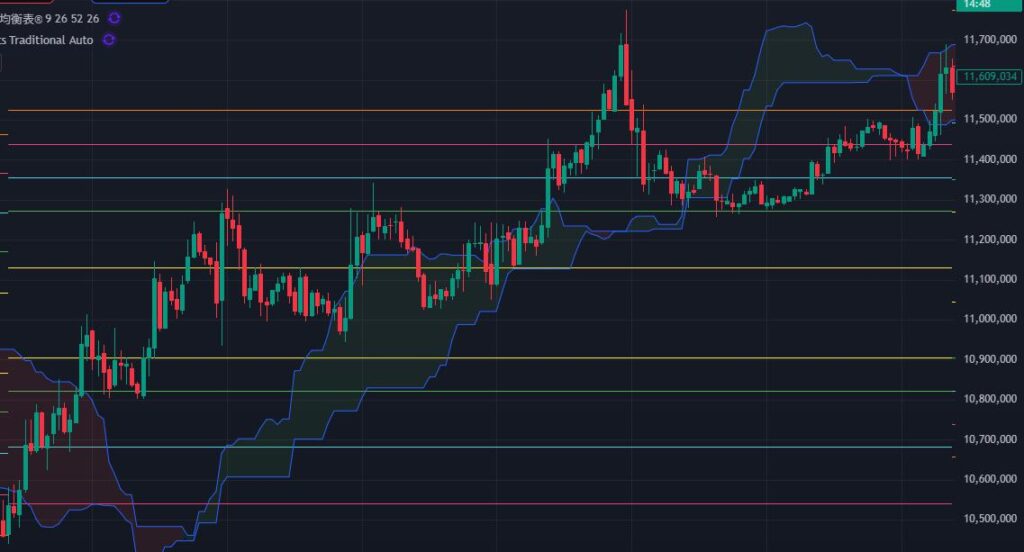 高値の1180万円を超えてきたらブレイクを狙ってのロングエントリーをしてみたいところです。
